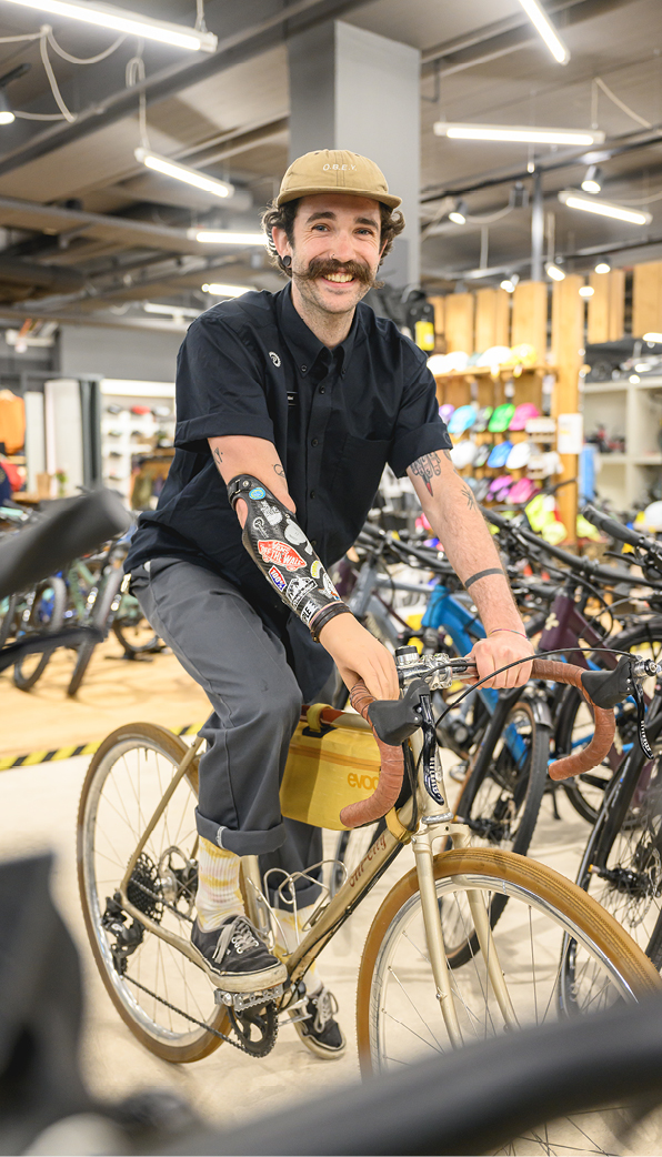 Cyrill frischt unser Verkausteam auf. Seine grosse Erfahrung im Sportartikelbereich gepaart mit seiner Veloleidenschaft sind ein top Match. Auf dem Bike mag er es gerne wild und dreckig, sein Style ist "loose baggy" - nur beim Schnauz überlässt er keinen Centimeter dem Zufall.
