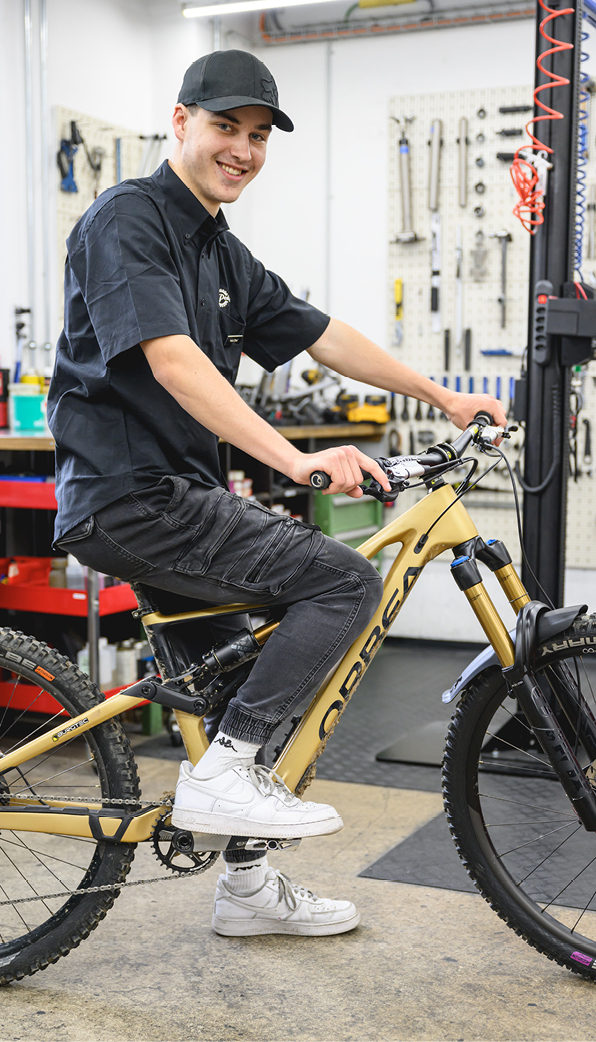 Ich bin fasziniert von Velos und Technik. Früher bin ich vor allem BMX gefahren und mit Beginn der Lehre in der Pedalerie habe ich auch das MTB entdeckt. Trails kennenzulernen und in Bike Parks zu fahren macht mir voll Spass.