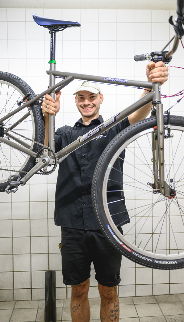 2-Rad-Romantiker und Veloreisender - Jodok hat in der Pedalerie seine Mechanikerlehre bestritten und seine Werkstatt-Sporen abverdient. Nach einer längeren Veloreise ist er zurück, wo alles begann und darüber freuen wir uns sehr.